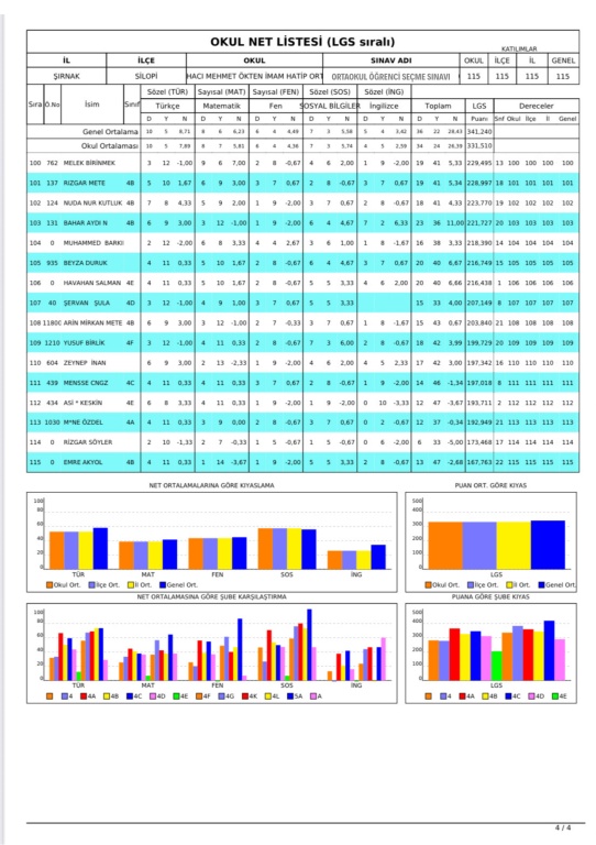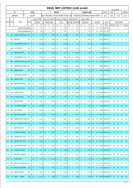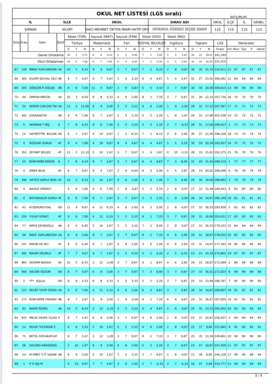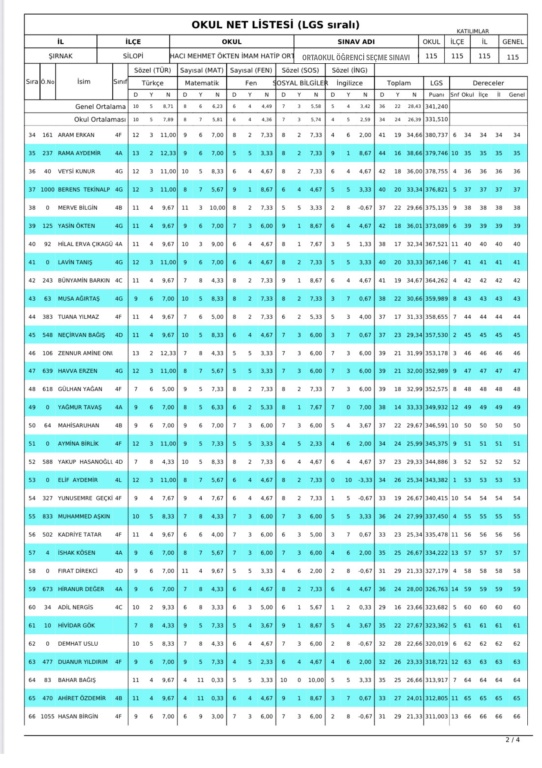 Ortaokul 5. Sınıf Seçme Sınavı Sonuçları